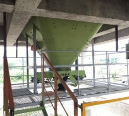 透過拌合機拌合之後所生成的混凝土會下料至儲斗,混凝土儲斗算是整個預拌廠最後一個程序,預拌車會來到這裡接下混凝土運往工地使用。