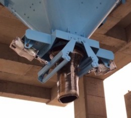小編第一次看到混凝土儲斗時其實蠻震撼的,四角轉圓加強本體強度;綜合混凝土的特性及製作上的便利,內部做了二到三種補強再搭配震動機,讓混凝土能夠輕鬆地下料,卻又不易磨到本體導致本體破損;下料處的設計,透過夾具搭配空壓缸將出口的橡膠漏斗夾住及放開來進行收放料這整個設計真的很特別。