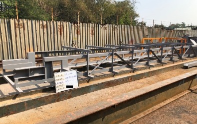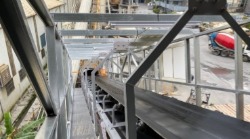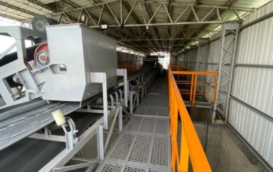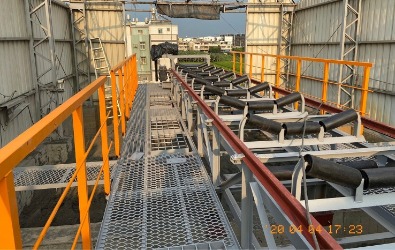 本次工案主要更換入庫輸送系統以及骨材上方梭動帶運機;有別於以往梭動帶運機,此案場因地形限制故使用台車是梭動車來進行分倉入料,我們稍微修改了入料方式原維修走道與入料過篩為同一個故長期砂石侵蝕導致走道破損,我們將兩側加寬使過篩區與走道分開台車經由控制室將車停於指定過篩區開始下料。